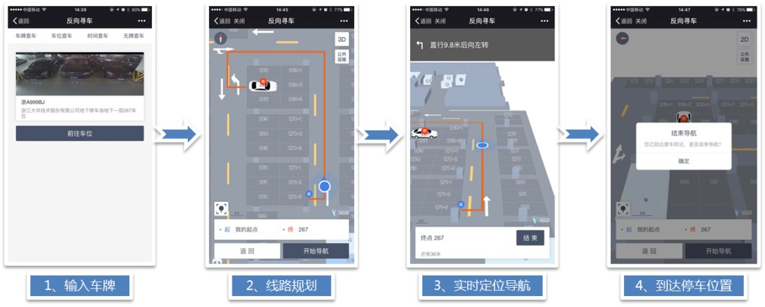 可視化反向?qū)ぼ嚕С职窜嚺铺?hào)、進(jìn)場時(shí)間段、無牌車、車位號(hào)快速尋車,節(jié)約車主尋車時(shí)間;iBeacon(藍(lán)牙)定位系統(tǒng),實(shí)現(xiàn)實(shí)時(shí)定位導(dǎo)航尋車,尋車體驗(yàn)更佳。